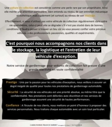 C’est pourquoi nous accompagnons nos clients dans le stockage, la logistique et l’entretien de leurs véhicules d’exception.
